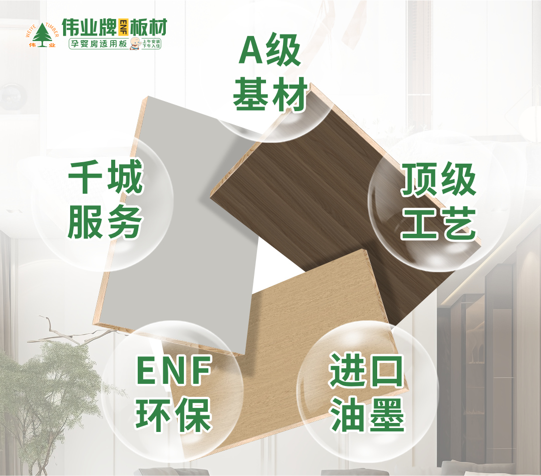 選板材,不止看環(huán)保!偉業(yè)牌板材用A級基材頂級工藝進(jìn)口油墨ENF+環(huán)保千城服務(wù),重新定義“一塊好板”的滿分標(biāo)準(zhǔn)! A級原木基材,從源頭打造“基因霸權(quán)” 好板材,...